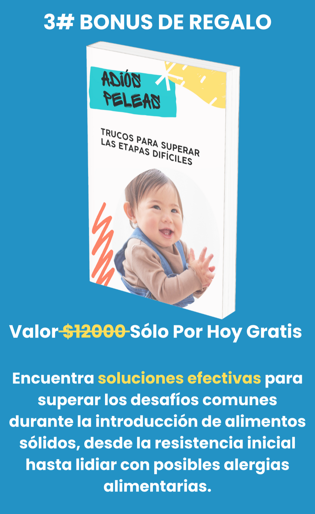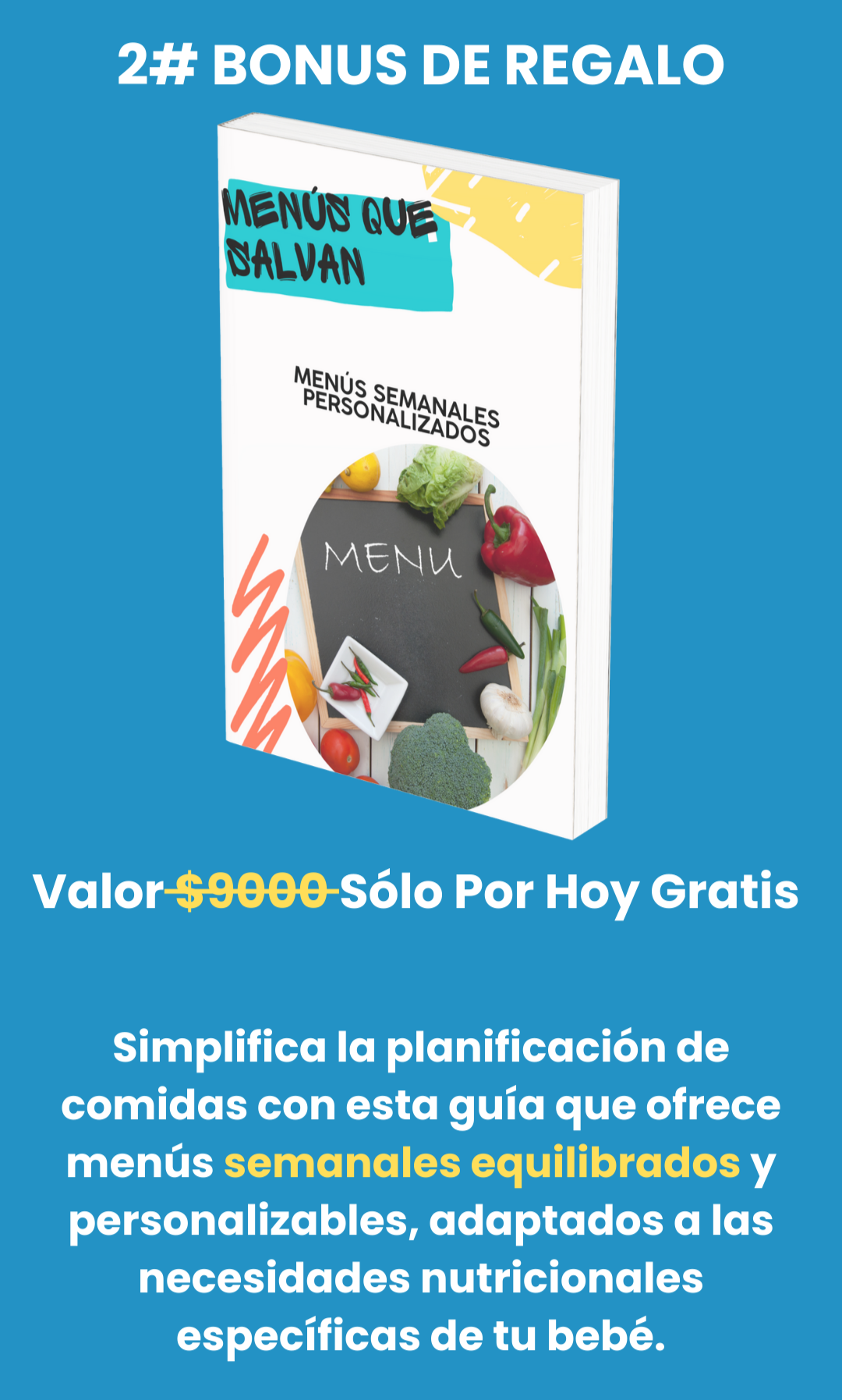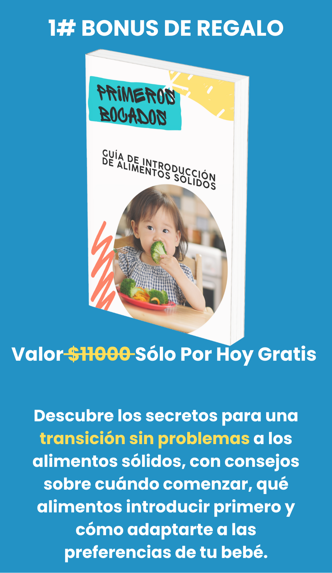 ¡Sí! Todos estos bonos son totalmente GRATIS e incluidos con tu compra del libro digital con más de 500 recetas para bebés 👶🍽️